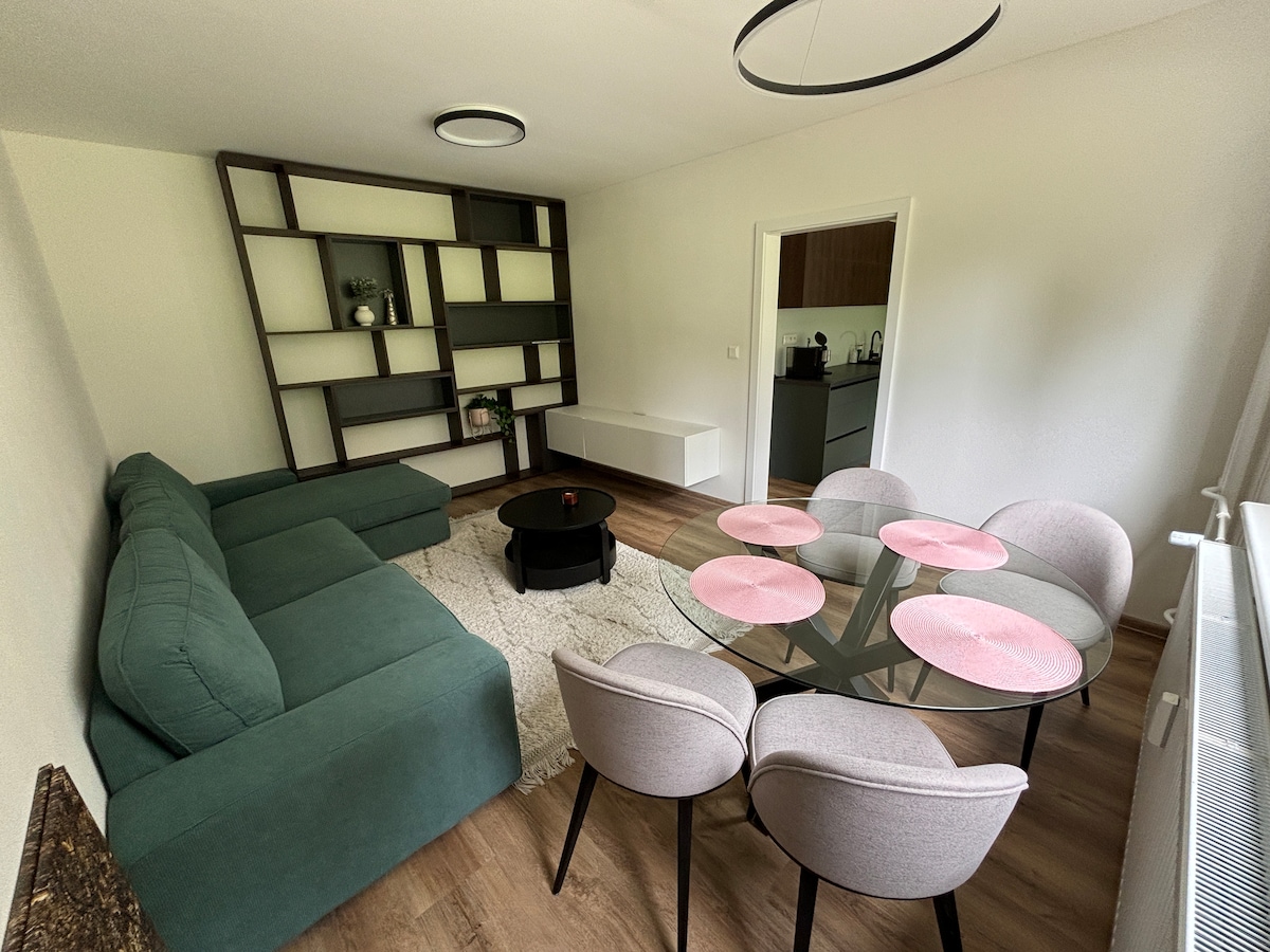 Недавно построенная полностью оборудованная уютная квартира с самым высоким комфортом и чистотой, расположенная в тихой части города, с отличным доступом к Tesco, Drogeria, ресторанам и Aupark в течение 3 минут и в 5 минутах ходьбы от главной площади Жилины. Квартира с дополнительной удобной кроватью и спальней для 2 человек (не подходит для проживания с ребенком), с частным доступом.