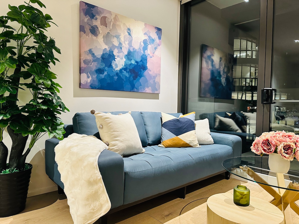 Спокойное пространство, которое можно назвать домом, пока вы находитесь в Мельбурне, ваша собственная квартира с 2 спальнями и 2 ванными комнатами (внутренний номер площадью 64 кв. м + балкон площадью 6 кв. м). Разработанный с учетом заповедника простой современный и минималистичный. Насладитесь потрясающим видом на город. Это дружелюбное семейное пространство. Расположен рядом со станцией Южный крест и терминалом Sky Bus. Расположенный в зоне бесплатного трамвая - все, что может предложить Мельбурн, находится у вас под рукой - недалеко от дешевых ресторанов, стильных ресторанов и хип-хоп кафе.