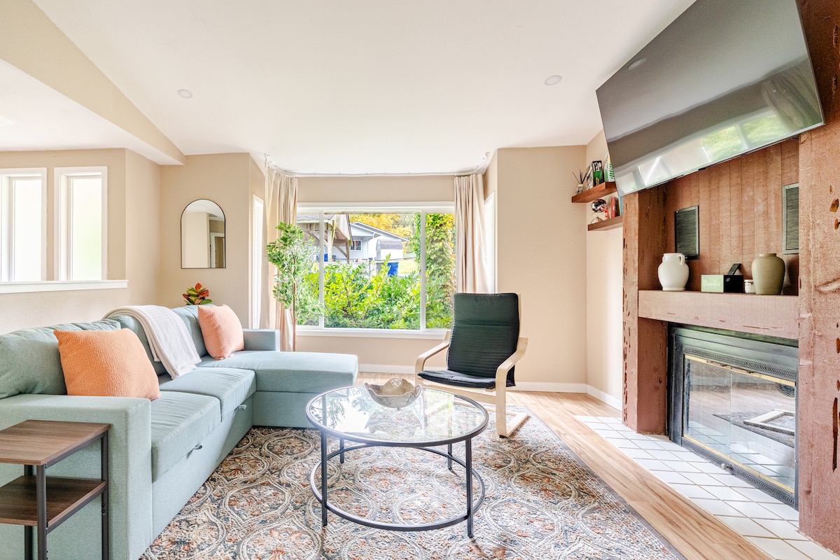 Наша квартира-студия имеет отдельный вход и отдельный балкон Джульетты, откуда открывается потрясающий вид на пролив Пьюджет. Комфортно выспитесь на кровати Tempurpedic с регулируемой головкой и подъемником. Дополнительный диван-кровать для дополнительных гостей. Предоставляется все необходимое. Отдельный крытый бассейн с видом на Пьюджет-Саунд. Многие достопримечательности находятся в 10 минутах ходьбы, включая пляж Мукилтео, паромный терминал, поезд Sounder до центра Сиэтла или города Мукилтео.