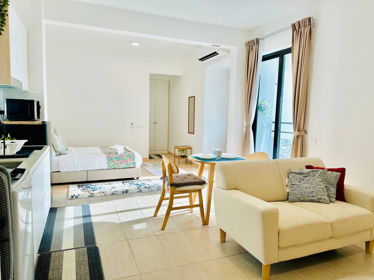 Внимательно прочитайте перед бронированием =) Это квартира с 1 спальней, расположенная в центре города Малакка! ✤ БЕСПЛАТНЫЙ высокоскоростной Wi-Fi. ✤ Смарт-телевизор (NETFLIX+Youtube) Она расположена на ВЕРХНЕМ этаже, наблюдая за городом. **Пожалуйста, ожидайте шума на дороге, когда она обращена к городу. Он расположен прямо через дорогу от торговых центров, закусочных и развлекательных заведений. Прогуляйтесь до популярных туристических мест, таких как улица Йонкер, Форт А 'Фамоса, холм и церковь Святого Павла, Stadthuys и Jonker Street за 10-15 минут.