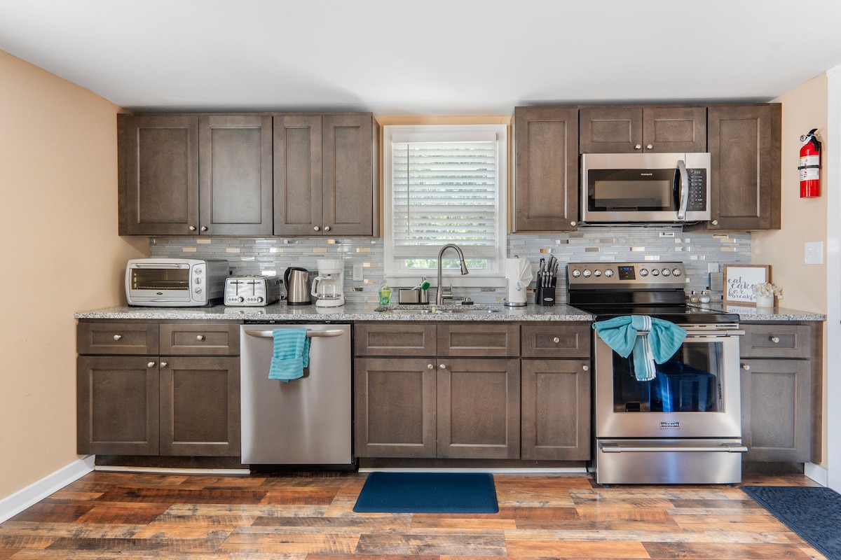 Кирпичный ранчо с телевизором/xfinity flex, Wi-Fi, системой кольцевой камеры/новой кухней/ванной комнатой, полностью отремонтированным холодильником из нержавеющей стали, плитой, микроволновой печью и посудомоечной машиной. Центральное отопление и кондиционер с потолочными вентиляторами в каждой комнате. Прачечная для вашего удобства, которая ведет к экранированному крыльцу и огороженному заднему двору. Шесть миль от военной базы Форт Грегг-Адамс. В четырех милях от Университета штата Вирджиния. В семи милях от парка Virginia Motorsports Park.