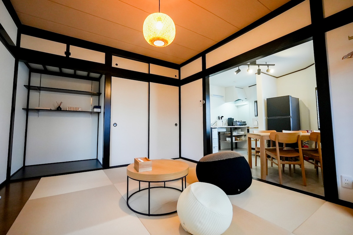 Добро пожаловать в наш частный гостевой дом, отремонтированный коминка — традиционный дом в японском стиле. Это жилье с собственной кухней предлагает аутентичную и уютную атмосферу. Хотя в нем могут разместиться до 10 взрослых, имейте в виду, что для больших групп жилье может показаться немного тесным. В доме 3 спальни, 1 столовая, 1 ванная комната и 2 туалета. Ощутите очарование старой Японии с удобствами современной жизни.