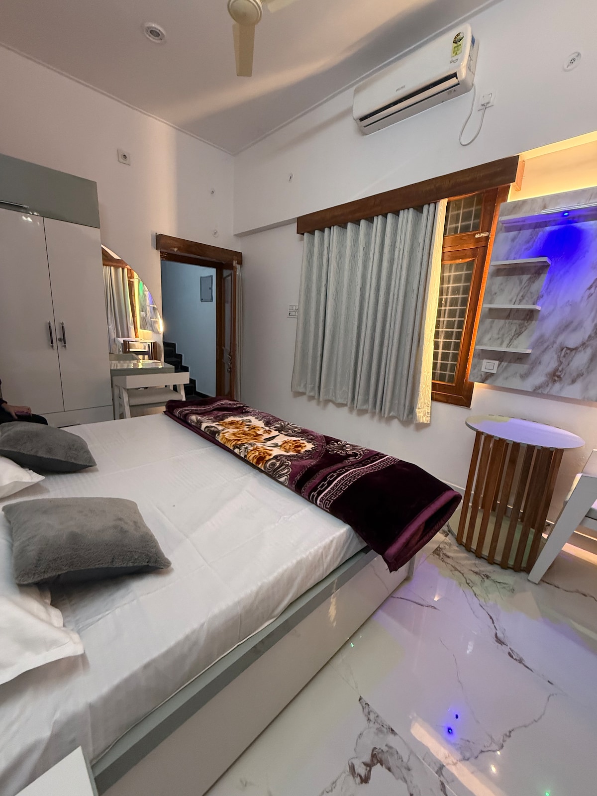 We have got your back 💪 Prema Villa - 1.5 Kms from the River Walking distance to Mahakumbh 🛕🏞️ Our property offers safe and comfortable stay with an open terrace full of lush planters. 🏡 Accommodation Details : A king size bed + one single bed suite with an attached washroom and independent access. (AC equipped) Perfect for 3-4 adults. Extra mattress may be provided on request. Room size : 10 x 20 feet Convenience store at 200m Food options - maybe provided upon request ( extra charge)