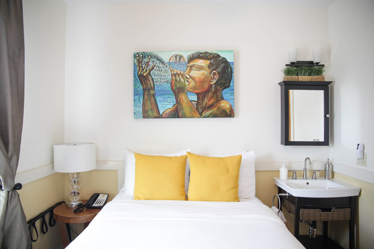 1 двуспальная кровать размера Queen size, отдельная ванная комната с качественными салонами и феном. Общий кондиционер, потолочный вентилятор, телевизор с плоским экраном и кабельными каналами, беспроводной Интернет, сейф в номере, мини-холодильник, бесплатный пропуск в тренажерный зал и бесплатная ежедневная уборка. Идеально подходит для одиночных путешественников, но вмещает до двух гостей. Эта комната расположена на 2-м этаже нашего главного здания, над нашим рестораном и баром, и будет шуметь до 23:00. Если вы беспокоитесь, мы рекомендуем забронировать другую комнату.