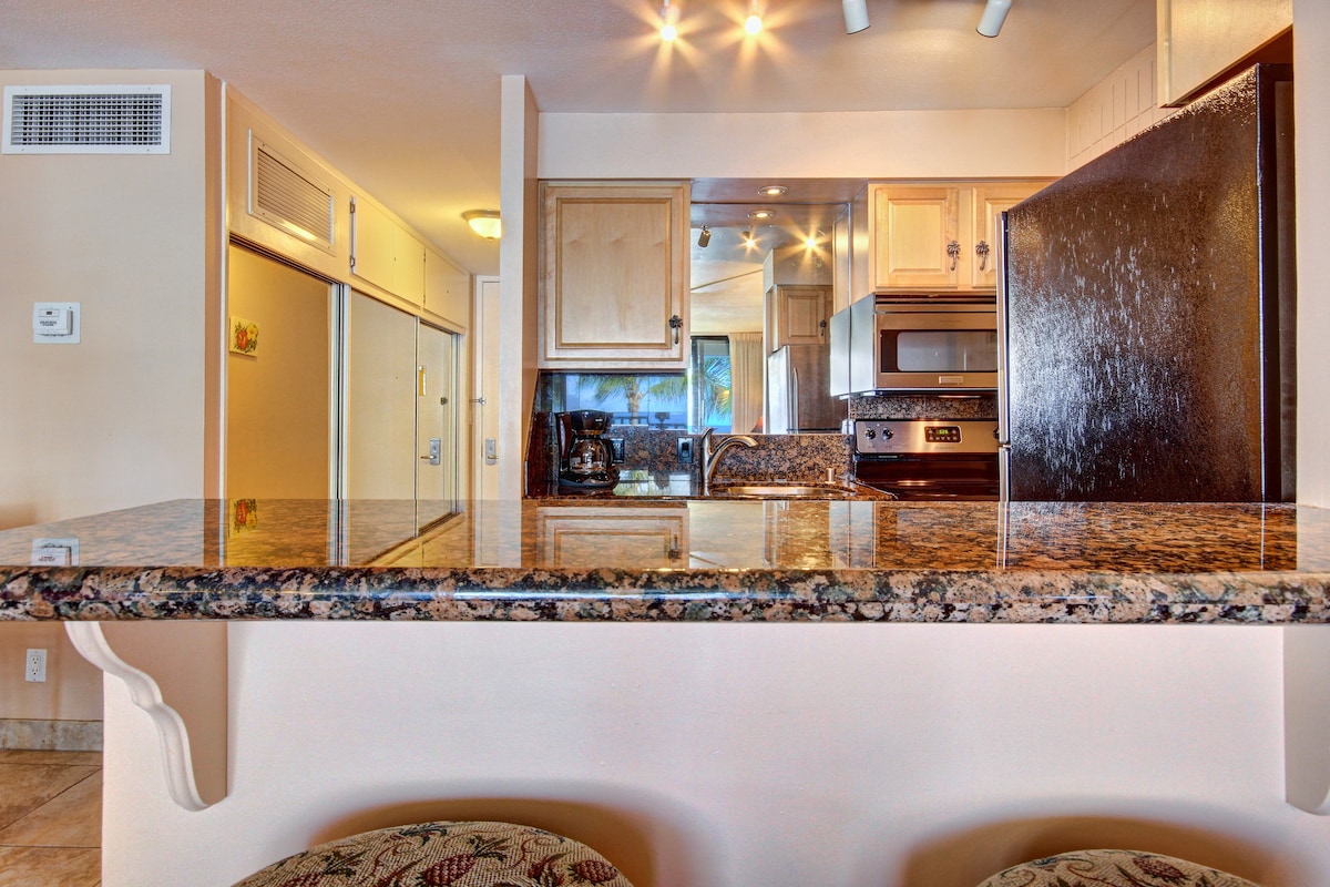 Прогуляйтесь по пляжу и песку от нашего комплекса. Насладитесь закатами на нашем ланаи. В квартире есть все необходимое (полностью оборудованная кухня с плитой, холодильником, микроволновой печью, кофеваркой и т. д.). Двуспальная кровать размера King size, телевизор с плоским экраном, бесплатный Wi-Fi. Гранитные прилавки на кухне и в ванной комнате. Бесплатный кондиционер!