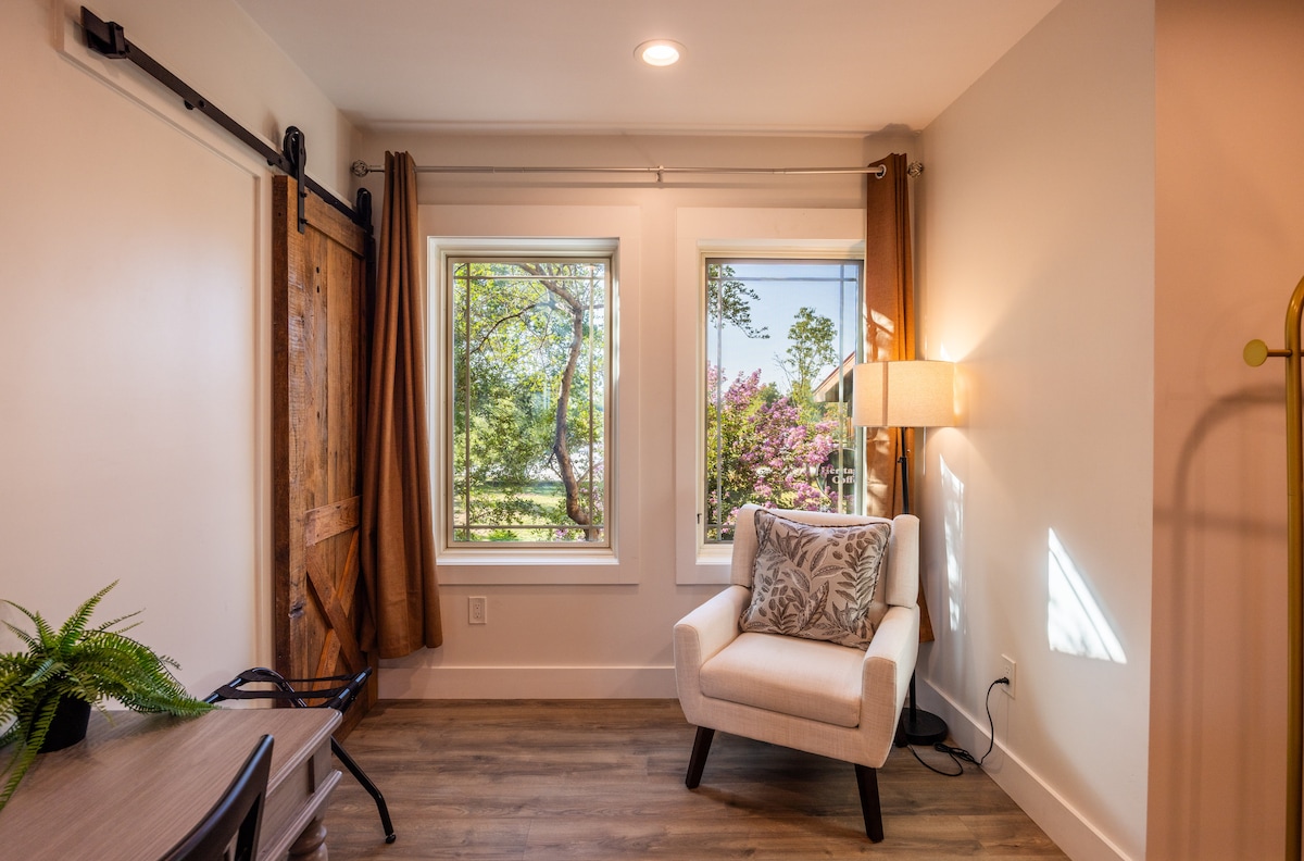 Shadow Bend, спрятанный под «Живыми дубами» у самой воды, - идеальное место для отдыха. Эта современная хижина, расположенная на природе, не имеет комфорта или удобства; в ней даже есть собственная гидромассажная ванна снаружи! К услугам гостей одна двуспальная кровать размера Queen size наверху и одна двуспальная кровать и ванная комната внизу. В распоряжении гостей кухня микро-шеф-повара с роскошной техникой, первоклассной мебелью середины века и изысканной скандинавской отделкой. В этом домике площадью 600 кв. футов вас ждут уникальные впечатления.
