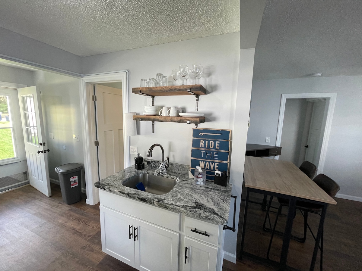 Наш коттедж - это дом площадью 1200 кв. футов, полностью отремонтированный в 2018 году на берегу озера! Включает частный причал и песчаный пляж в нескольких минутах ходьбы с костровищем, 4 каяками и сапсерфингом. Озеро обеспечивает тихое время «без пробуждения» до 11:00. Несколько террас, чтобы насладиться солнцем или тенью. Наслаждайтесь отличным местным гольфом, ресторанами и казино. Или посидите на песчаном пляже в нескольких минутах ходьбы и понаблюдайте за лысыми орлами, голубыми цаплями, утками и скопами. Рыбы, лыжи, сапсерфинг или отдых. Для бронирования должно быть не менее 25 лет.