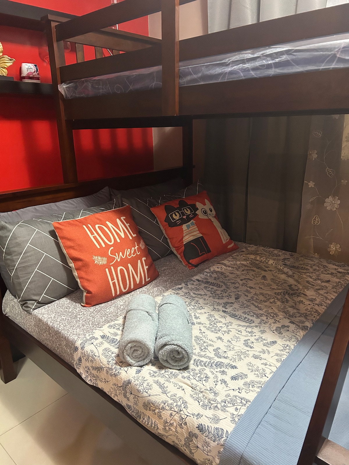Experience lavishness in each and every corner of this air-conditioned modern and luxurious BrandNew Centrally located Condo unit. Enjoy an incredible and relaxing experience w/ full double-size bed topped with Ikea Duvet covers. Sit back in 2-seater sofa bed while watching your favorite NETFLIX series in 40 Inches TV. Complete cooking and dining utensils. Spacious study area for WFH needs w/ Fiber Internet speed up to 80MBPS.Clean and fragrant T&B w/ hot and cold shower.