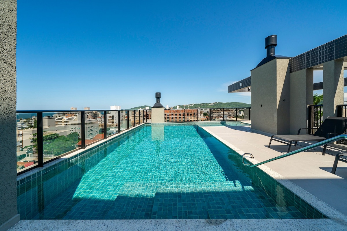 Элитная квартира в пляжном здании в Балнеариу-Камбориу, бассейн и джакузи с видом на море и на весь край города. Тренажерный зал, прачечная, круглосуточная охрана, гараж, кондиционер, Wi-Fi и Smart TV, микроволновая печь, электрическая духовка, блендер, кофеварка, эспрессо-машина, сэндвичница, холодильник, электрическая плита, двуспальная кровать, все необходимое для приятного и комфортного проживания с большим количеством шарма и удобства.