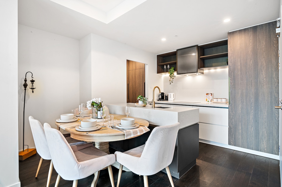 Одно из самых крутых Airbnb в Мельбурне! Из пентхауса открывается панорамный вид на реку Ярра на 270 градусов. Он сочетает в себе роскошь и современный дизайн, а также удобный доступ к городу. Это идеальная база для тех, кто хочет насладиться Мельбурном в лучшем виде. Aura предлагает комфорт и удобство, от террасы на крыше с видом до ультрасовременных удобств, как для профессионалов, ищущих уединенное место в городе, так и для тех, кто ищет стильную квартиру в центре города.