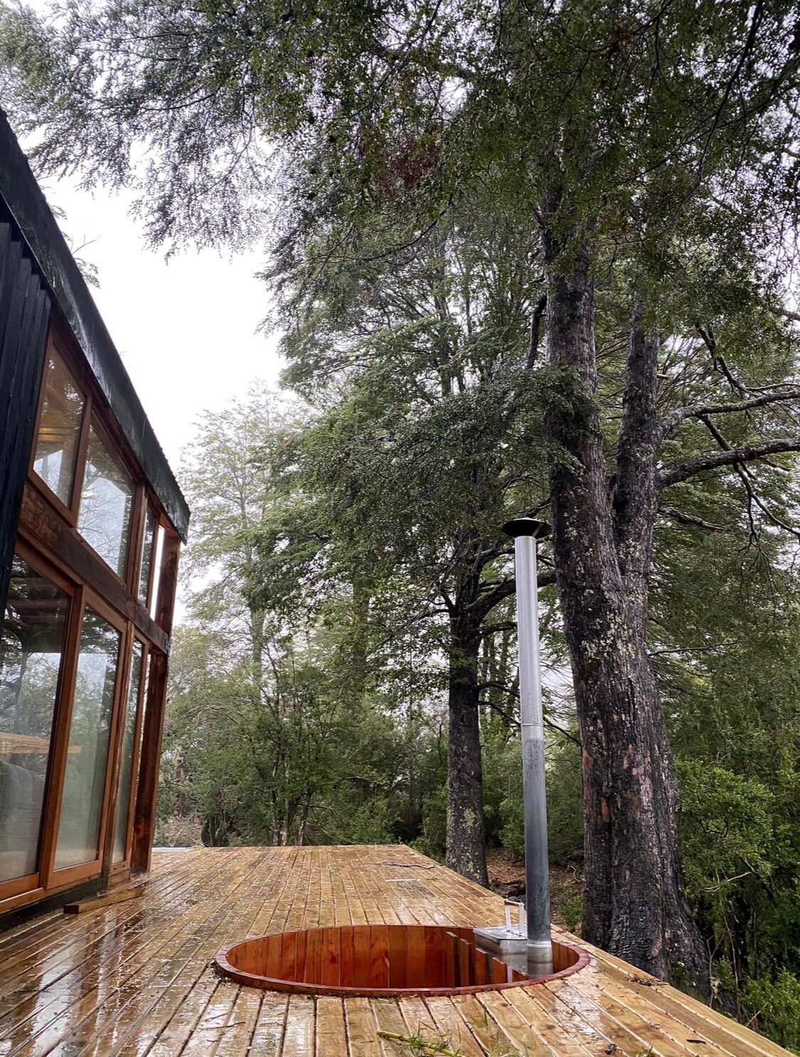 Домик на 2 человек с горными велосипедами (не включает сеанс в джакузи, дополнительная стоимость 40 000 долларов). Из него открывается захватывающий вид на вулкан Льяйма, а само место окружено лесом предгорья. Национальный парк Конгильо находится в 8 км. Рядом протекает река Каприн, и находятся Лос-Траэрос-де-ла-Лагуна-Негра, геосайты, которые являются частью геопарка Кутралкура. Также поблизости находятся лыжный центр, природные заповедники, велосипедные дорожки, горячие источники и водопады.