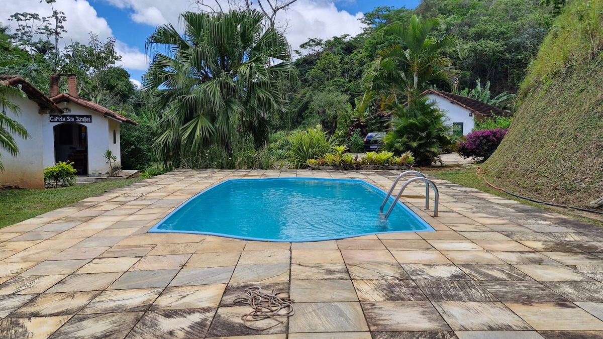 Sitio с привилегированным расположением, эксклюзивным районом для той же группы гостей (это НЕ гостевой дом) в уютном месте, среди природы, обилие дикой фауны, фруктовых деревьев, в регионе, который имеет свой климат, считающийся одним из лучших в мире. Идеально подходит для экологических пеших прогулок и катания на горных велосипедах. Мы принимаем небольших домашних животных! В доме 2 этажа, второй этаж будет доступен для групп более 5 человек. Бассейн работает с декабря по март.