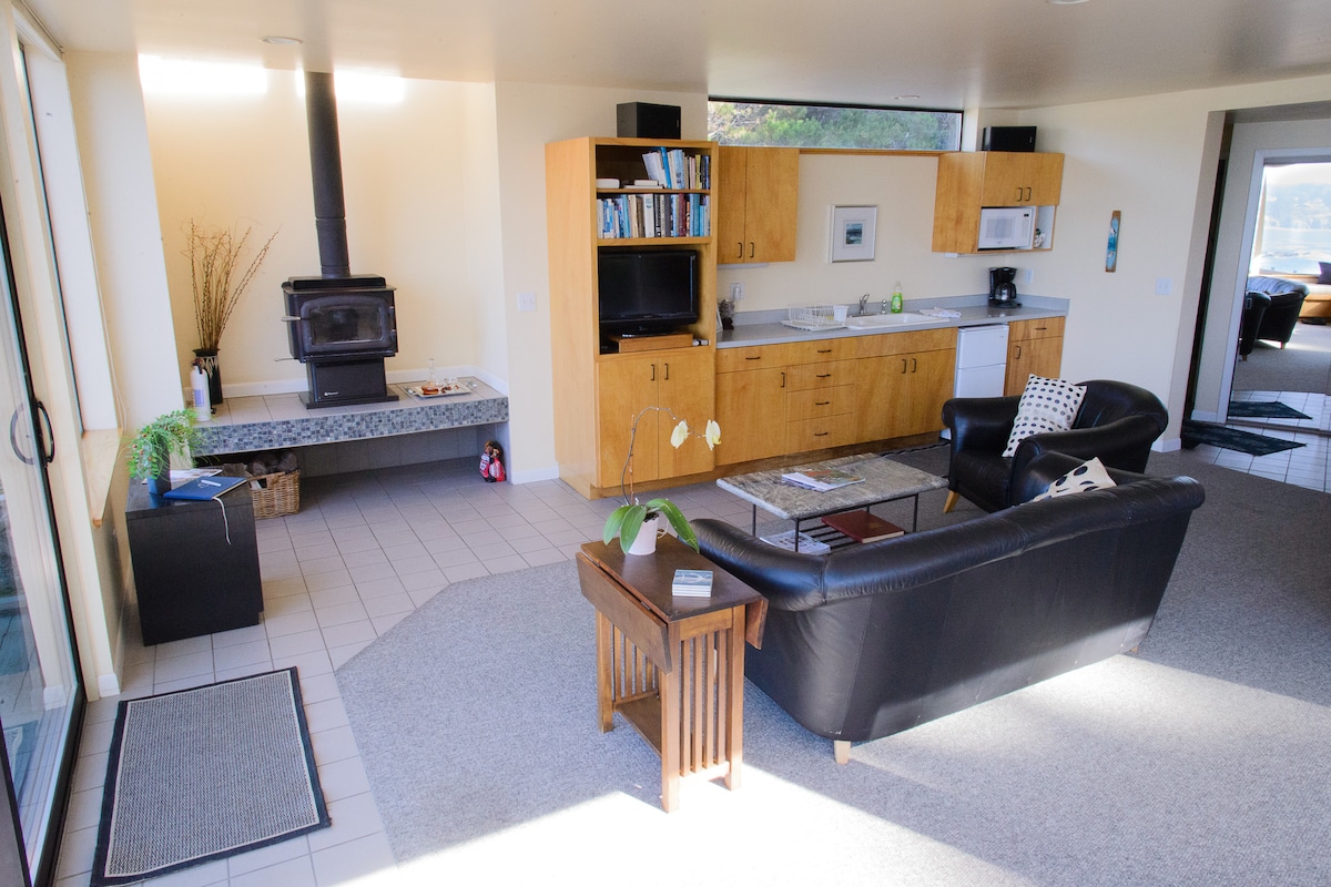Коттедж на берегу океана на вершине с потрясающим видом на Тихий океан и побережье Мендочино. У нас есть собственные приливные бассейны! Уединенное, но удобное расположение по отношению к центру Форт-Брэгга. Всего в 5 милях от Мендочино. В нашем солнечном и спокойном доме можно выспаться под шум волн. Wi-Fi, полностью оборудованная кухня и вся бытовая техника. Отремонтированная кухня и ванная комната. Удивительные закаты и отличное наблюдение за звездами! Цены включают налоги на проживание. Можно забронировать с помощью гостевого дома с видом на океан и выходом на побережье для больших групп.