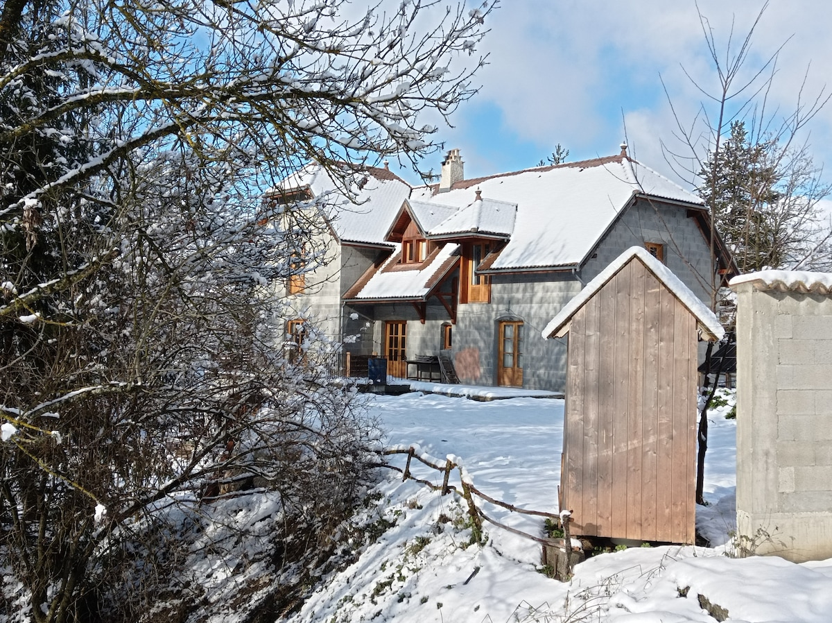 Отличное жилье для семей/групп. До 10 человек, центр деревни. Спальня 1 : 2 двуспальные кровати Спальня 2 : 2 двуспальные кровати. Спальня 3 : 1 двуспальная кровать Предоставляется постельное белье. 2 ванные комнаты, стиральная машина. Прихожая. Полностью оборудованная кухня в гостиной. 2 дивана, дровяная печь, телевизор. Веранда 27 кв. м для питания. Терраса 20 кв. м с садовой мебелью и барбекю. Потрясающие виды на горы, которые восхищают спортсменов, семей и всех любителей гор.