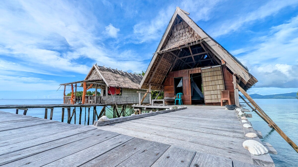 Отдохните от суеты, остановившись в Голубом море Раджа-Ампат. Вилла предлагает 5 домов,где этот дом построен на природе манггрового леса в небольшой деревне (Swainggrai). В каждом доме могут разместиться 2-4 человека,есть 2 матраса, ленивая кровать, письменный стол , гамак и туалет,очень хорошо подходит для уединения семьи.