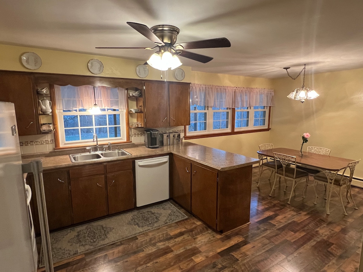Приезжайте отдохнуть в нашем частном доме с 2 спальнями и ванной комнатой. Ваша зона — отдельная квартира внизу, которая имеет собственный вход, так что вы можете приходить и уходить, когда вам угодно. Для вашего комфорта есть оборудованная кухня и гостиная. Расположен в 0,8 мили от Вестминстерского колледжа в центре страны амишей. Начните свой день с бесплатного Keurig или поищите свежие пончики из яблочного замка. Также можно совершить беспошлинные покупки в аутлетах Grove City, расположенных в нескольких минутах езды.