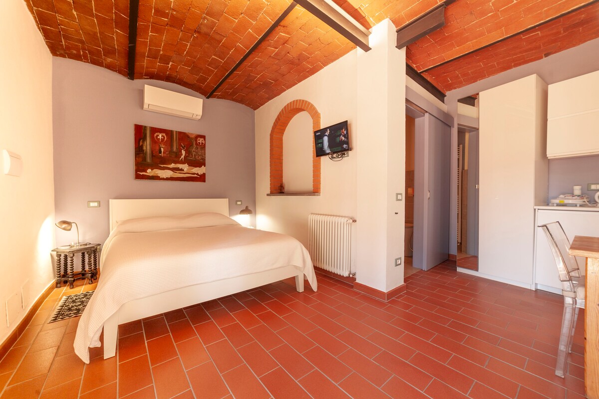 Quite and luminous studio to sleep 2, located on the left side of the river Arno, only at 30 yards/meters from Ponte Vecchio. The studio is on the third floor with lift and has a living room with parquet floor and a real double sized bed, bathroom with shower and fully equipped kitchenette! the double glaze window is overlooking the main street and the bathroom window has mosquito net , it is also provided of air conditioning/heating, Wi-Fi connection and tv wall mount for all your conforts