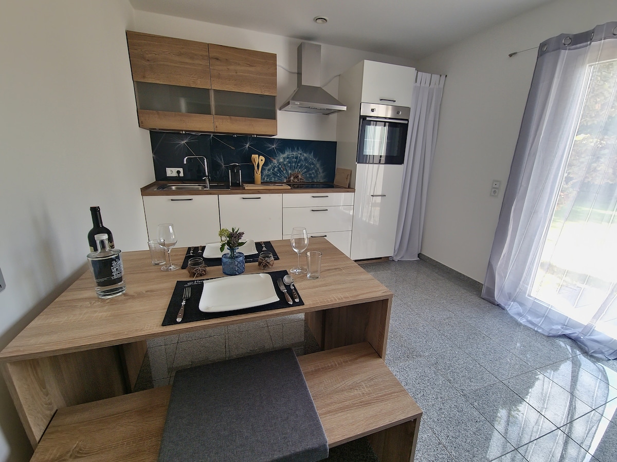 Для романтических, расслабленных дней на природе, вдали от стресса, только на двоих, для влюбленных, для тех, кто нуждается в отдыхе, для любителей сада - просто выключите - наш гостевой дом (около 40 кв. м) предлагает все это в центре нашего сада (8000 кв. м), в окружении леса и церкви. Для всех, кто может обойтись без телевизора. 2 км от небольшой деревни Фалькенфельс с замком и прудом. Straubinger Volksfest привлекает всемирное наследие ЮНЕСКО в Регенсбурге, катание на лыжах или походы в Сент-Энгльмар или на Арбер.