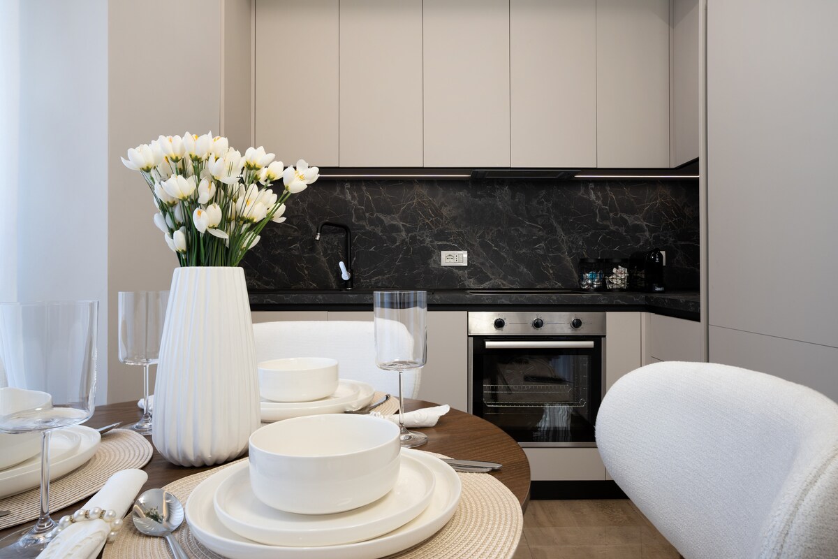 - Легкое самостоятельное прибытие доступно круглосуточно. - Быстрый и стабильный Wi-Fi (80 Мбит/с DL / 15 Мбит/с UL). - Кондиционеры во всех комнатах, стиральная машина и сушилка. - Удобная кровать с пеной с эффектом памяти. - Еженедельная уборка с заменой нового постельного белья и полотенец. - Бесплатно: Netflix, Disney+, Amazon Prime Video, SkyShowtime. - Оборудованная кухня, духовка и эспрессо-машина - Всё необходимое для приготовления пищи (оливковое масло, соль, перец, сахар, кофе и чай). - Подземная парковка в том же комплексе зданий. (Не бесплатно. Оплачивается гостем).