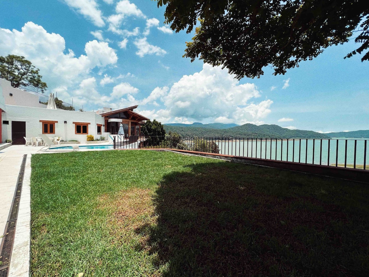 Cabaña a pie de la presa. Cuenta con un hermoso porche protegido con ventanas de cristal. La Cabaña tiene una área común empastada con plantas y arboles, donde encontraras una casa de juegos para niños, terraza y palapa. La terraza cuenta con asador y horno, además de vista 360. Kayak disponible para andar en la presa. Mesa de ping-pong. Cocina equipada. Habitaciones con vistas panorámicas alrededor de la cabaña y un enorme tapanco. Caminatas donde encontraras lugares naturalmente mágicos.