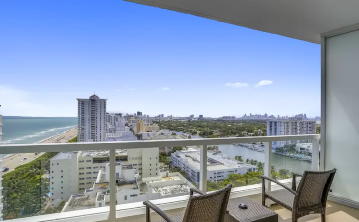 Добро пожаловать в Pure Miami Beach! Откройте для себя современную пляжную студию в солнечном Майами-Бич, штат Флорида, с захватывающим видом на океан на 180°. Расслабьтесь в роскошной двуспальной кровати размера King size, трансляцию на 65-дюймовом 4K-телевизоре Samsung или работайте с частным Wi-Fi 300 МБ и подключением Ethernet. Оставайтесь в форме в отремонтированном тренажерном зале, а затем расслабьтесь у сверкающего бассейна с прямым выходом на пляж, шезлонгами и тики-баром для тропических напитков и закусок. Бесплатная парковка, роскошная отделка и бесконечная атмосфера океана делают этот отдых незабываемым!