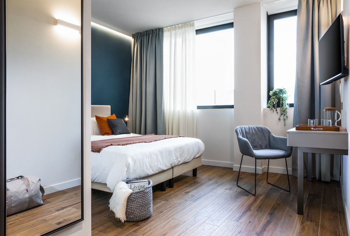 A&B ΠΠΠΠΠ Π | OWL Bed 'French' (Queen Bedroom) (1 Ρ ΠΏΠΎΠ»ΠΎΠ²ΠΈΠ½ΠΎΠΉ ΠΊΠ²Π°Π΄ΡΠ°ΡΠ½ΡΠΉ Π΄Π²ΠΎΠΉΠ½ΠΎΠΉ ΠΌΠ°ΡΡΠ°Ρ ΡΠ°Π·ΠΌΠ΅ΡΠΎΠΌ 140 x 200 ΡΠΌ) ΠΡΠΌΠΎΡΡΠ΅ΡΠ° Π΄ΠΈΠ·Π°ΠΉΠ½Π° Ρ Π°ΡΠ°ΠΊΡΠ΅ΡΠΈΠ·ΡΠ΅Ρ ΡΠΎΠ²ΠΎΠ²ΡΡ ΠΊΠΎΠΌΠ½Π°ΡΡ, ΡΡΡΠ½Π°Ρ, ΡΠ²Π΅ΡΠ»Π°Ρ ΠΈ Ρ ΡΠΎΠ±ΡΡΠ²Π΅Π½Π½ΡΠΌ Π±Π°Π»ΠΊΠΎΠ½ΠΎΠΌ ΠΎΡΠ²Π΅ΡΠ°Π΅Ρ ΠΏΠΎΡΡΠ΅Π±Π½ΠΎΡΡΡΠΌ ΠΊΠΎΠΌΡΠΎΡΡΠ° ΠΈ ΠΊΠ°ΡΠ΅ΡΡΠ²Π°. ΠΠ΄Π΅Π°Π»Π΅Π½ Π΄Π»Ρ ΠΏΠ°Ρ ΠΈΠ»ΠΈ Π΄Π΅Π»ΠΎΠ²ΡΡ ΠΏΡΡΠ΅ΡΠ΅ΡΡΠ²Π΅Π½Π½ΠΈΠΊΠΎΠ². Π ΡΠ΄ΠΎΠΌ Ρ ΡΡΠΌΠ°ΡΠΊΠΎΠΉ Rho FieraMilano ΠΈ Π·ΠΎΠ½ΠΎΠΉ Π ΠΠΠ£ΠΠ.