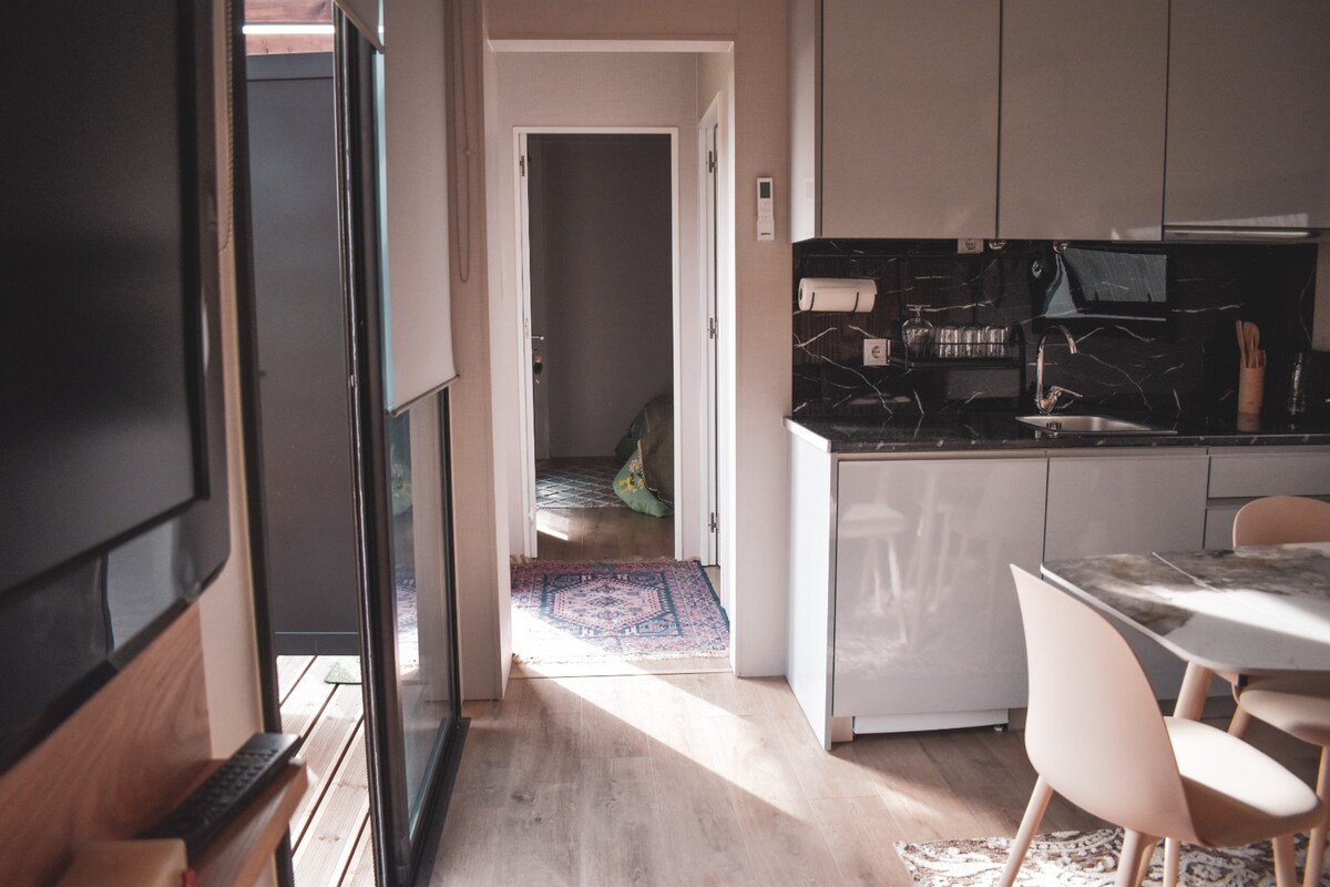 В квартире (пентхаус) есть вертикальная садовая терраса, спальня с двуспальной кроватью 1,60 х 2,0 метра, шкафы и сейф. Гостиная с диваном, 4K-телевизором, кабельными каналами и Netflix, звуковой системой Rotel Bluetooth и мини-баром с бесплатными напитками для гостей. Кухня оборудована: микроволновой печью, холодильником, посудомоечной машиной, индукционной варочной панелью, тостером, чайником и Nexpresso. Полностью оборудованная ванная комната с биде и душем, феном и удобствами (гель для душа, шампунь и крем для тела), утюгом и гладильной доской.