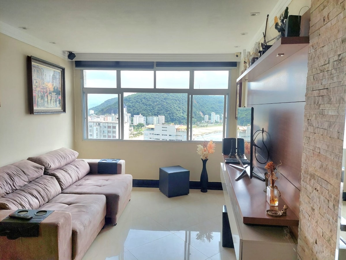 Venha sentir a experiência de se hospedar sobre o mar, com uma vista incrível, num apartamento aconchegante, confortável, limpo, seguro e completo, com tudo o que você precisa para relaxar e ficar apreciando a vista da janela. Localizado no topo da Ilha Porchat, em SV. Apto com ar condicionado, cama box casal, sofá cama, Smart TV com acesso ao Netflix, internet de alta velocidade, cozinha completa com todos os utensílios necessários para preparar refeições, e curtir a paz e tranquilidade.