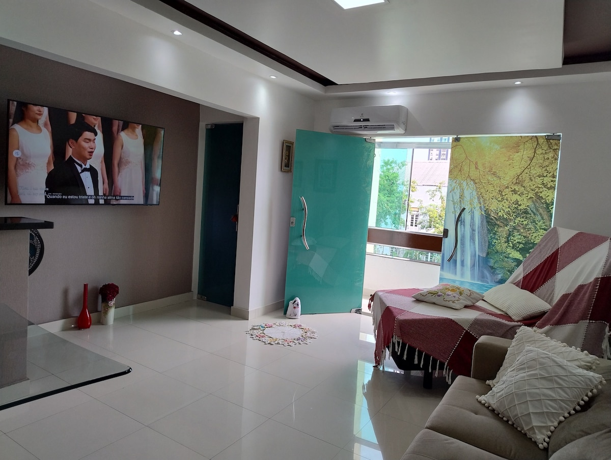 Группа будет иметь легкий доступ ко всему необходимому в этом отличном месте и полностью охлажденном месте. Просторная ванная комната, с возможностью размещения до 8 человек. Кровать размера Queen size, рабочее место, гостиная и полностью оборудованная кухня. — Холодильник — Микроволновая печь — Кофеварка — Балкон 50 м от торгового центра Amazonas Shopping 1 м до Senac Рядом с торговым центром Plaza Shopping, Fametro, Estácio de Sá, Bobs, Petrobras, Sidia, UEA.