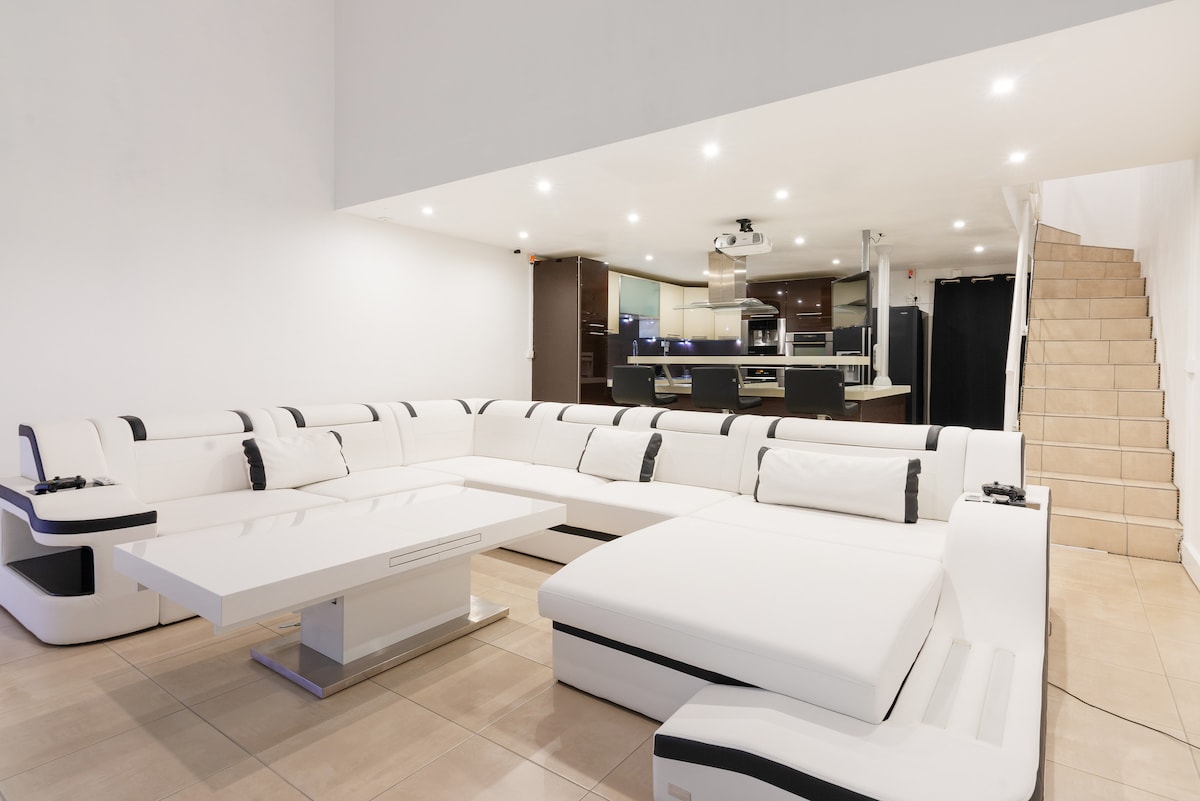 Недавно отремонтированный лофт F5 площадью 90 м2. Рядом пешеходная зона, магазины и автобусные остановки. Вход/хранение, большая спальня/гардеробная, американская кухня/центральный остров, огромный лаундж /телевизор /домашний кинотеатр, гидромассажная ванна , молоток , гидромассаж, тренажерный зал , спортивный тренерский зал * 25 минут на поезде от Лионского вокзала * 10 минут от Cartonnerie (Боулинг, Кинотеатр, Катание на коньках, Тренажерный зал...), * 20 минут от Carré Sénart * 5 минут от Panthéon ASSAS, Карфурский рынок