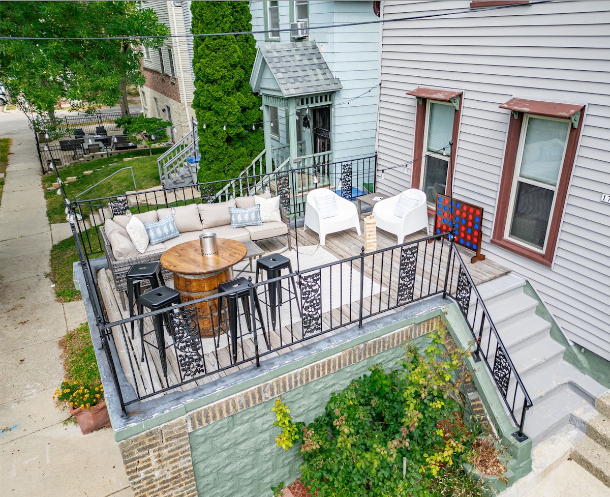 Добро пожаловать в Милуоки! Этот отремонтированный дом предлагает просторный и стильный отдых вместимостью до 11 гостей. Этот дом с четырьмя спальнями, двумя полноценными ванными и очаровательными кремовыми городскими кирпичными акцентами идеально сочетает в себе современный комфорт с историческим очарованием. Наслаждайтесь кофейным баром с патио на открытом воздухе, камином и обеденной зоной. Частная парковка на 4 человек. Гостиная в стиле лаунж. Рядом с Brady St. Рестораны, бары, салоны, магазины и удобные магазины прямо за входной дверью. Возьмите с собой и семейную собаку!