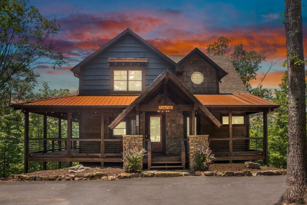 ALL FEES ARE INCLUDED IN PRICE! Our cozy cabin features mountain views, spacious wrap-around porch & fireplace, and comfortable seating. There are 3 bedrooms, all with king-sized beds, and 3 baths. An x-large open loft w/ king bed. Game room with a pool table, screened-in hot tub, private upper balcony off the master bedroom, 2 interior gas fireplaces, and a fire pit & fireplace outside. Near by: Lk Blue Ridge, golfing, restaurants, wineries, shopping, hiking, horseback riding & more