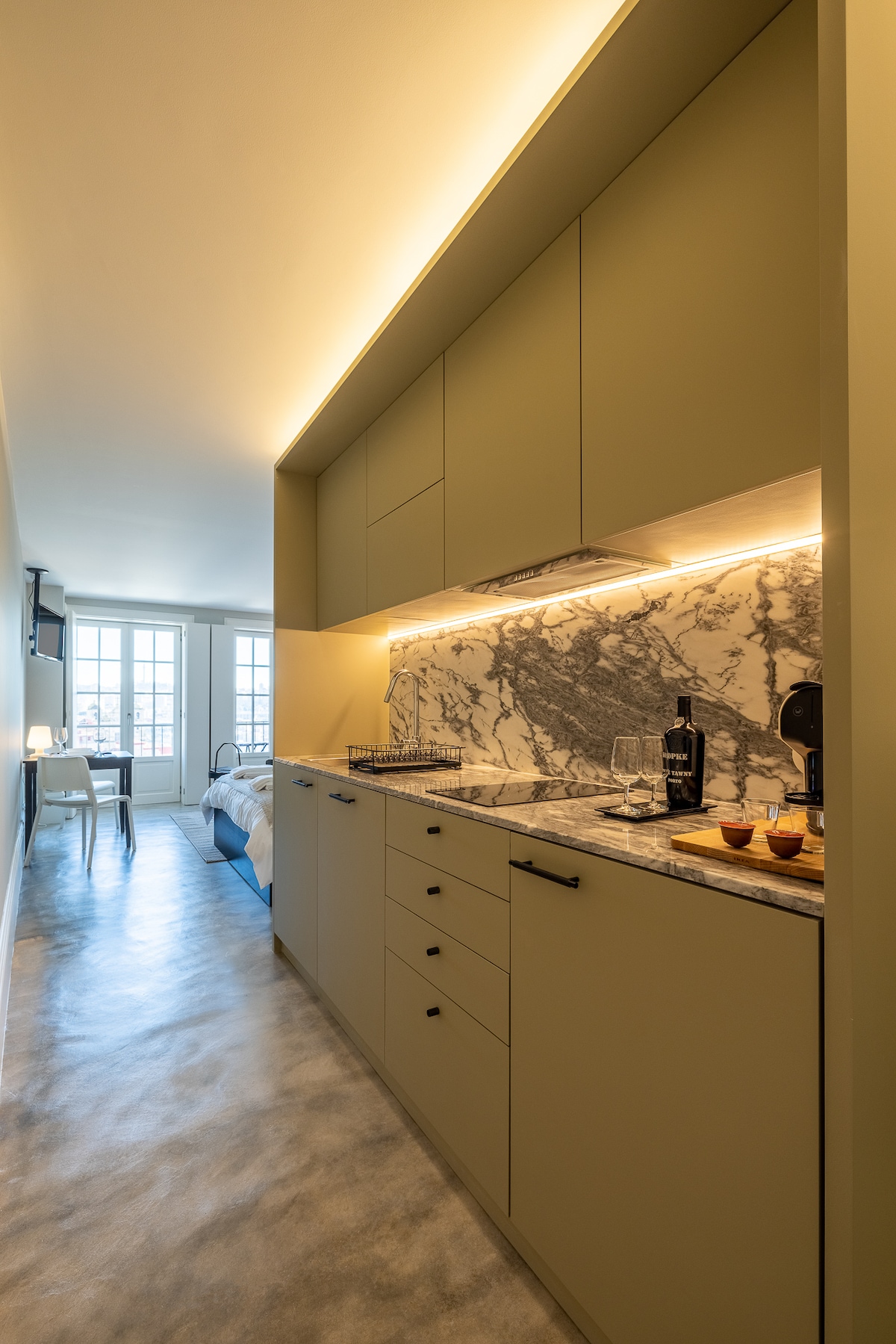 Представьте себе возвращение в ваши уютные апартаменты и на балкон с великолепным панорамным видом на собор XII века, старые дома и реку Дору, наслаждаясь бокалом портвейна после знакомства с городом. Утром вы почувствуете привилегию проснуться с удивительным восходом солнца во время завтрака с кофе. Отдохните в уютной спальне с высококачественной кроватью размера Queen size и постельным бельем премиум-класса. Откройте для себя исторический мрамор Эштремош, украшающий вашу современную полностью оборудованную кухню и ванную комнату.