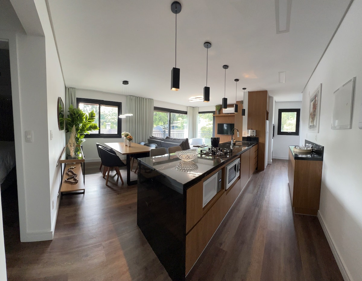 Отличная квартира-дуплекс, расположенная на тихой улице, недалеко от озера Жоакина Рита Биер и проспекта Борхес де Медейрос. Хорошо оборудованное и оформленное. К услугам гостей Wi-Fi, 4 телевизора со Smart TV, 4 сплит-системы, кухня с кофемашиной Dolce Gusto, традиционная электрическая кофемашина, аэрофритюрница, очиститель холодной, природной и ледяной воды, двуспальная кровать и ванна, 1 парковочное место. Жилье расположено в тихом и лесистом месте. Идеально подходит для тех, кто ищет хорошую гастрономию, комфорт и тишину.