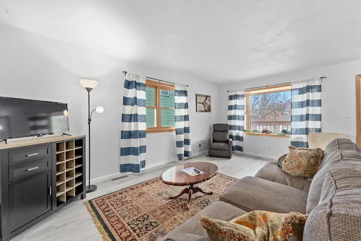 Уютная, чистая и шикарная квартира на лестничном пролете на нижнем уровне триплекса недалеко от Университета Огастаны, Университета Сиу-Фолс, Североамериканской семинарии, больниц Sanford & Avera и Центра водных видов спорта Мидко. Расположена в центре города и в нескольких минутах езды от торгового центра Empire Mall и зоопарка Great Plains. Электрический камин. Доступ на террасу с освещением в бистро и костровой ямой на заднем дворе. Чистый и безопасный район. Доступ к прачечной на том же этаже. Потоковая передача Wi-Fi и ChromeCast. На улице парковка доступна.