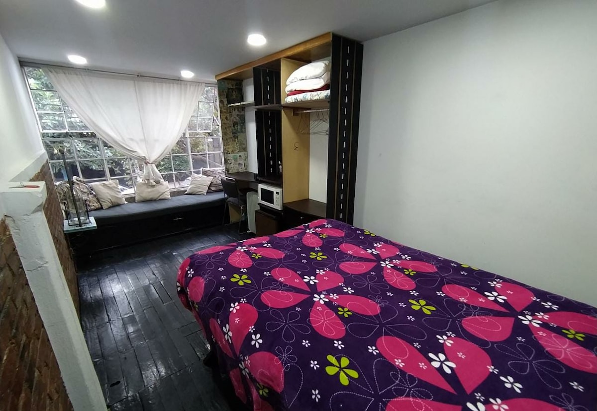 Добро пожаловать в Койоакан! Наша комната расположена в типичном доме Койоаканенсе, в двух кварталах от исторического центра Койоакана, одного из самых традиционных и посещаемых в Мехико. Благодаря идеальному расположению вы можете дойти пешком до любого из многочисленных музеев, площадей, садов, книжных магазинов, галерей, базаров, рынков и ресторанов, предлагаемых живописным центром Койоакана.