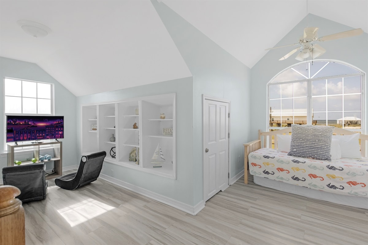 Сбегите от забот, наслаждаясь видом на побережье Мексиканского залива из нашего обновленного кондоминиума на пляже. Главная спальня с двуспальной кроватью размера King size и собственной ванной комнатой. Уютный двухъярусный уголок рассчитан на комфортное проживание 2-3 детей или 2 взрослых. Имеется полноразмерная гостевая ванная комната и спальный диван. Красивый частный пляж и сверкающие воды залива находятся всего в 3-5 минутах ходьбы без улиц! Наши гости могут пользоваться двумя бассейнами и спа-салонами, а также тренажерным залом прямо рядом с нашим кондоминиумом на первом этаже.