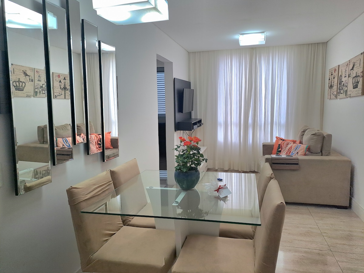 Расслабьтесь и отдохните в этой просторной и современной квартире в Можи-дас-Крузис. Идеально подходит для семей, с просторной зеленой зоной, очищающим кондиционером и всеми удобствами, необходимыми для комфортного проживания! Примечание: бассейн недоступен для гостей. Пространство 125 кв. м, предназначенное для вашего комфорта: 3 отдельных люкса. Полностью оборудованная кухня. Прачечная со стиральной машиной/сушилкой. Изысканный балкон идеально подходит для особых моментов.