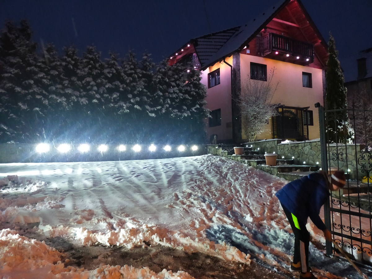 Carpathian Log Home - это комплекс из двух деревянных шале, расположенных у подножья национального парка Пьятра-Краюлуй. Роскошные хижины расположены на окраине леса, недалеко от легендарного Бранского замка. В первом шале есть четыре спальни с собственными ванными комнатами, гостиная с высоким потолком с камином и стеклянной стеной с потрясающим видом, кухня для гурманов, сауна/джакузи, барбекю и беседка. Идеальный дом для отдыха в районе Брашова.