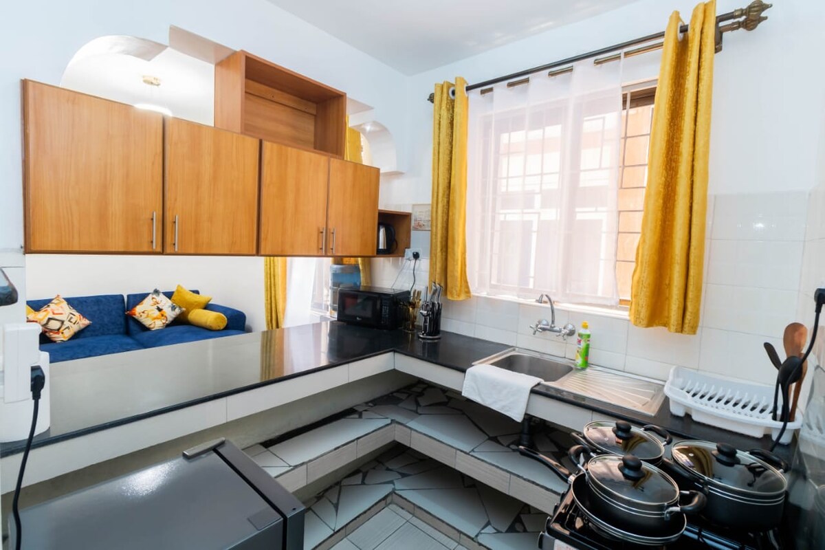 Добро пожаловать в Vale Residence — современную квартиру с 1 спальней в центре Ньяли, Момбаса. Всего в 5 минутах от пляжа, идеально подходит для любителей пляжа, семей, друзей или удаленных работников. Наслаждайтесь кондиционером и вентиляторами в каждой комнате, быстрым Wi-Fi, полностью оборудованной кухней и безопасной парковкой. Прогуляйтесь до лучших ресторанов, торговых центров и ночных клубов. Идеальный отдых на побережье ждет вас! ПРИМЕЧАНИЕ: в квартире нет лифта, и клиент должен пополнять жетоны для электричества по мере использования.