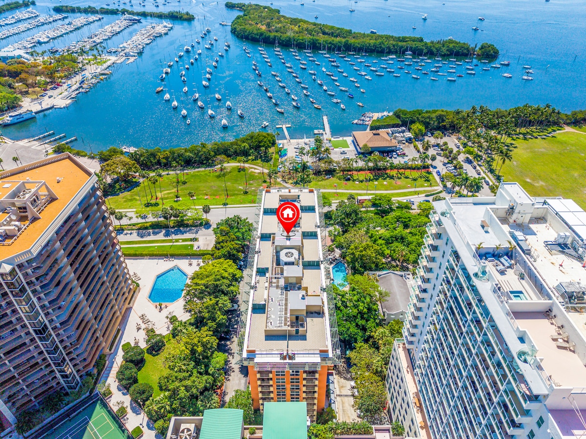 Кондоминиум Brickell с бассейном, видом на залив и бесплатной парковкой