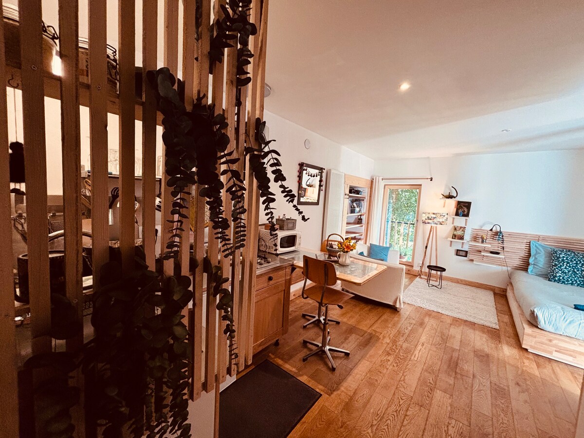 Откройте для себя нашу крошечную верхнюю Юру с великолепным видом в зеленом углу над Сен-Клодом Наслаждайтесь звуками природы, остановившись в этом уникальном жилье в окружении нашего осла и карликовых коз! Завтрак по меню включен в стоимость первой ночи и предлагает вам выбор соленых и/или сладких продуктов. Подарите себе романтический вечер, выходные, спокойную неделю и наслаждайтесь джакузи/спа по желанию по прибытии!