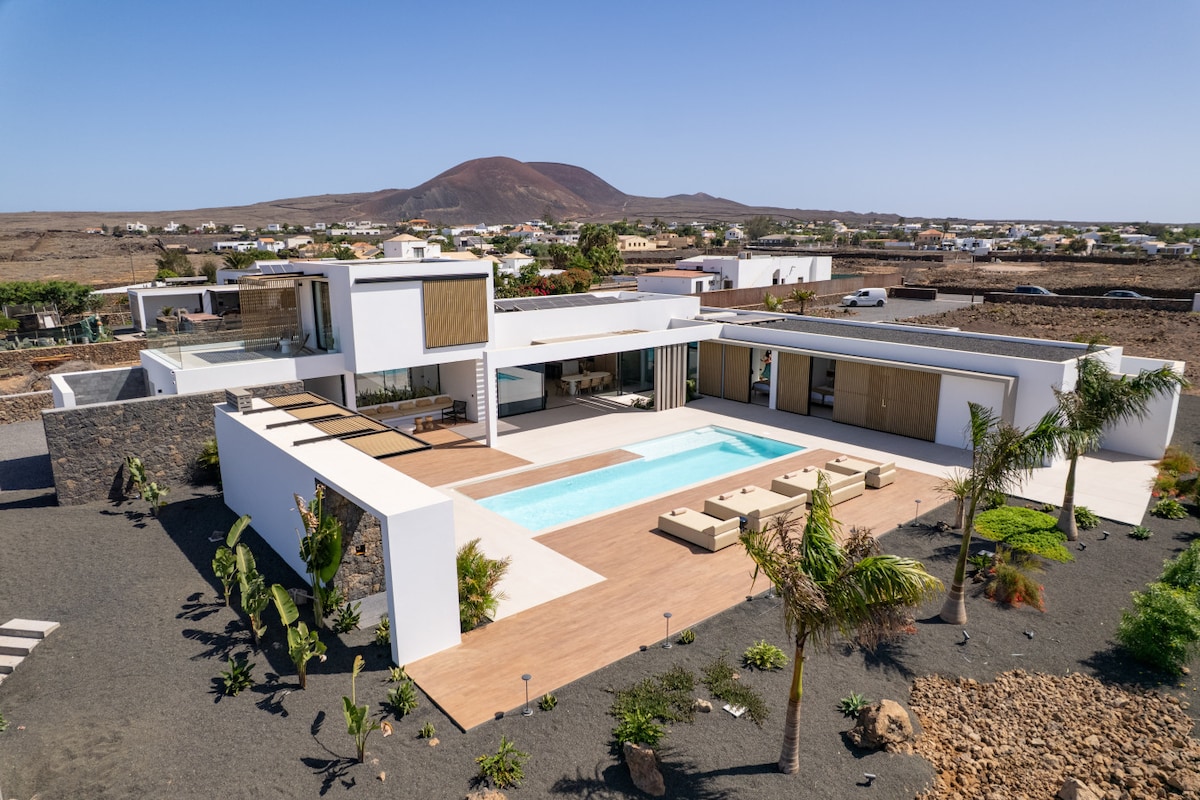 Минималистский дом с видом на вулкан и бассейном с подогревом
