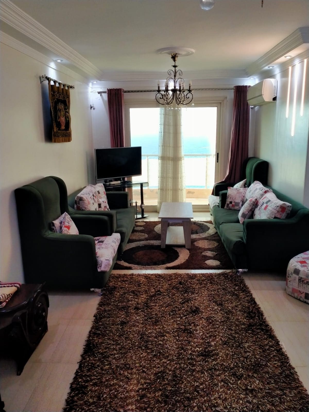 ✨ Потрясающая квартира с видом на море в Александрии, 12-й этаж ✨ Просыпайтесь с захватывающим панорамным видом на Средиземное море из этой полностью меблированной квартиры с 3 спальнями в центре Александрии. Расположение на 12-м этаже обеспечивает свежий морской бриз, естественное освещение и максимальный комфорт. 🏠 Особенности: • 3 просторные спальни. • Полное кондиционирование во всех комнатах. • Быстрый Wi-Fi. • Полностью меблировано и оснащено современными удобствами. 📍 Идеальное расположение: Sedi Beshr рядом с Аль-Монтазой в 2 минутах от центра города