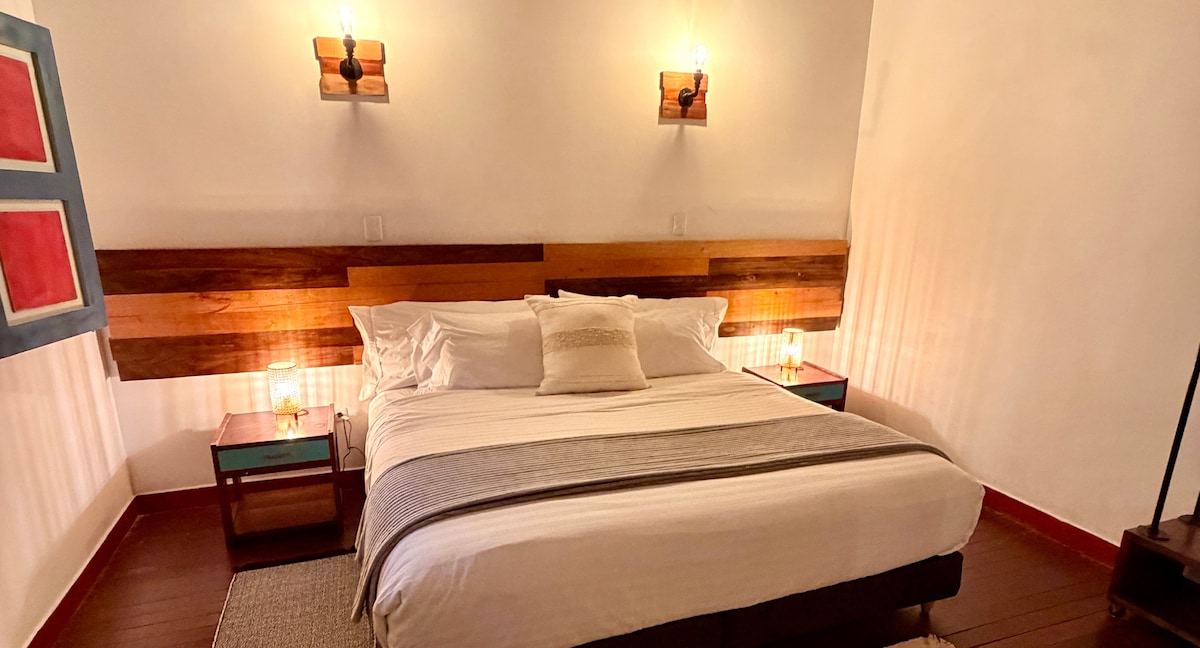 Насладитесь уникальным отдыхом в нашем бутик-отеле, окруженном природой, с типичным завтраком. В номере Veranera есть кровать размера King size 2х2 м, собственная ванная комната со всеми удобствами, 32-дюймовый телевизор с Roku (Netflix и HBO Max), вид на сад. Постельное белье высшего качества для вашего лучшего отдыха. Расположена на втором этаже, с доступом в гостиную и на балкон. В отеле Tierra Maravilla мы предлагаем индивидуальное внимание, просторные сады и очаровательную загородную зону.