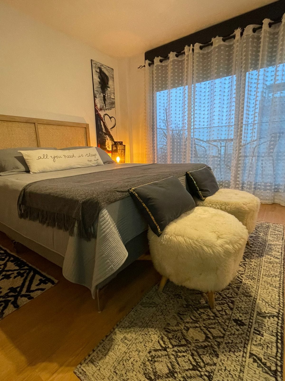 Элегантная и просторная 2-СПАЛЬНАЯ квартира с видом на море и всеми удобствами. Идеальное место для семей, групп друзей или деловых путешественников, которые хотят совместить комфорт, практичность и стиль. • 1 главный люкс с кроватью размера Queen size. • отдельная ванная комната; • Вид на город. • 1 уютная спальня с 2 односпальными кроватями, идеально подходит для детей или дополнительных гостей. Полностью оборудованная кухня и светлая просторная гостиная с телевизором и балконом с панорамным видом.