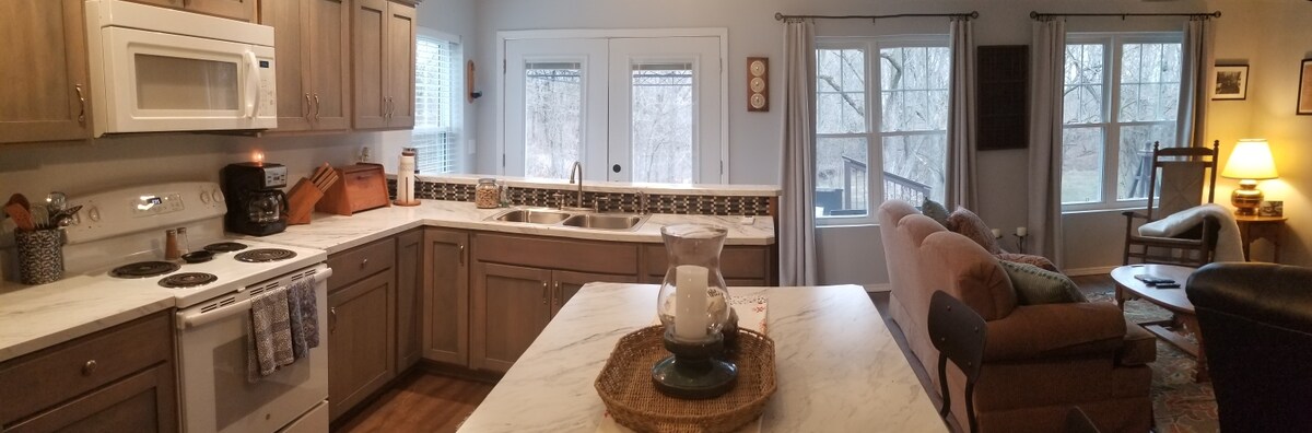 Расслабляющий гостевой дом в тихой сельской местности с часто посещением местных оленей. Рядом с Shades и Turkey Run State Park и Wabash College. Отличное место для проведения фестиваля Covered Bridge и свадебных площадок. Мы живем на территории с нашими 2 шоколадными лабрадорами. У гостевого дома есть отдельный вход и собственная открытая терраса с видом на лес. Жилье целиком доступ для людей с ограниченными возможностями, включая большую ванную комнату с душем. Уборка соответствует рекомендациям Центров по контролю и профилактике заболеваний США.