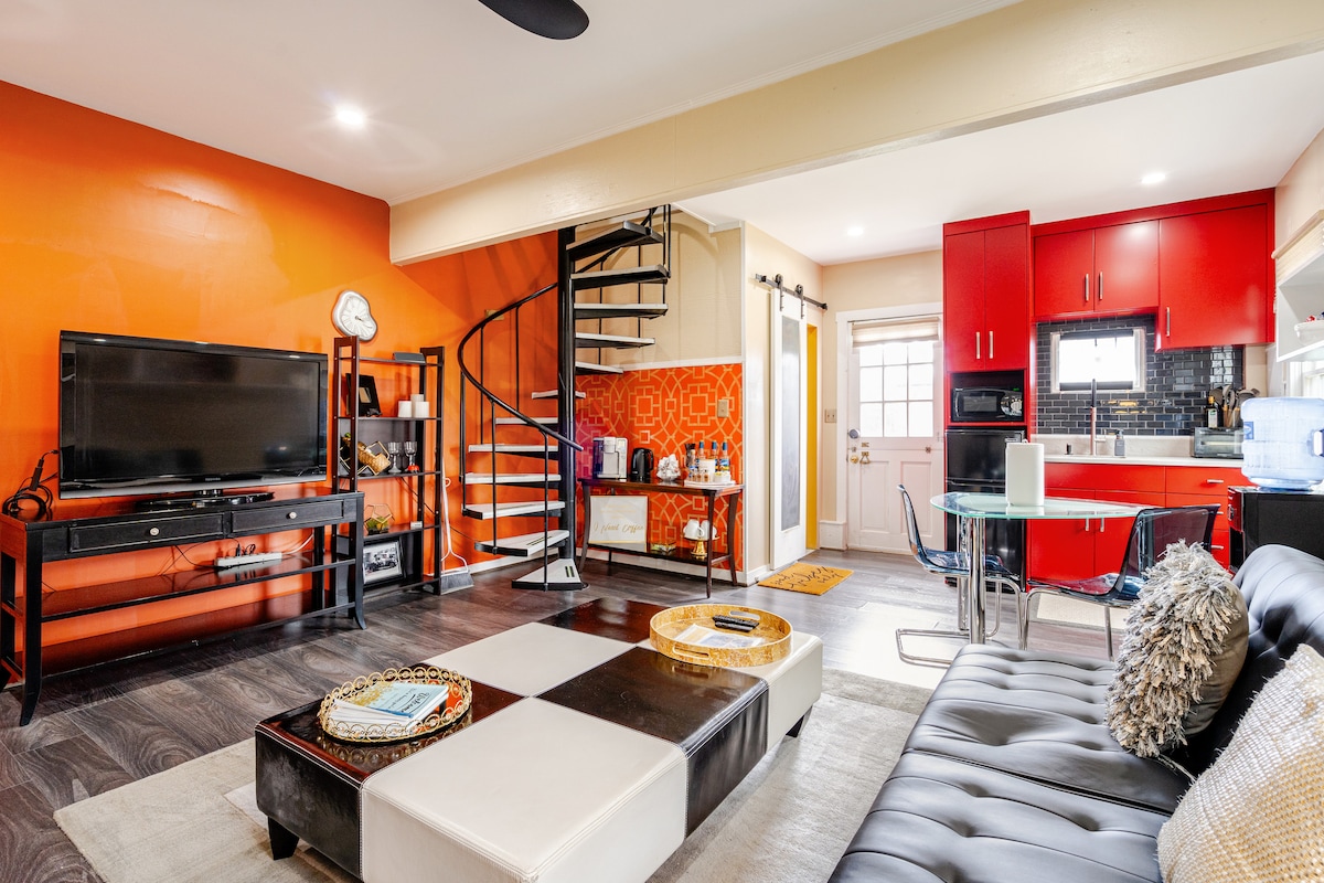 Исторический 1-/5-этажный каретный домик в центре Роквилла, штат Мэриленд. Расположена в задней части нашего жилья (отдельно от нашего основного места жительства)- гостевая парковка, отдельный вход и крытое открытое патио с мебелью, доступной по запросу. Современный, но уютный декор. Комфортное размещение 2 человек на двуспальной кровати размера King size, место для дополнительного гостя на футоне в гостиной. До метро Роквилла и центра города можно дойти пешком за 0,7 мили.