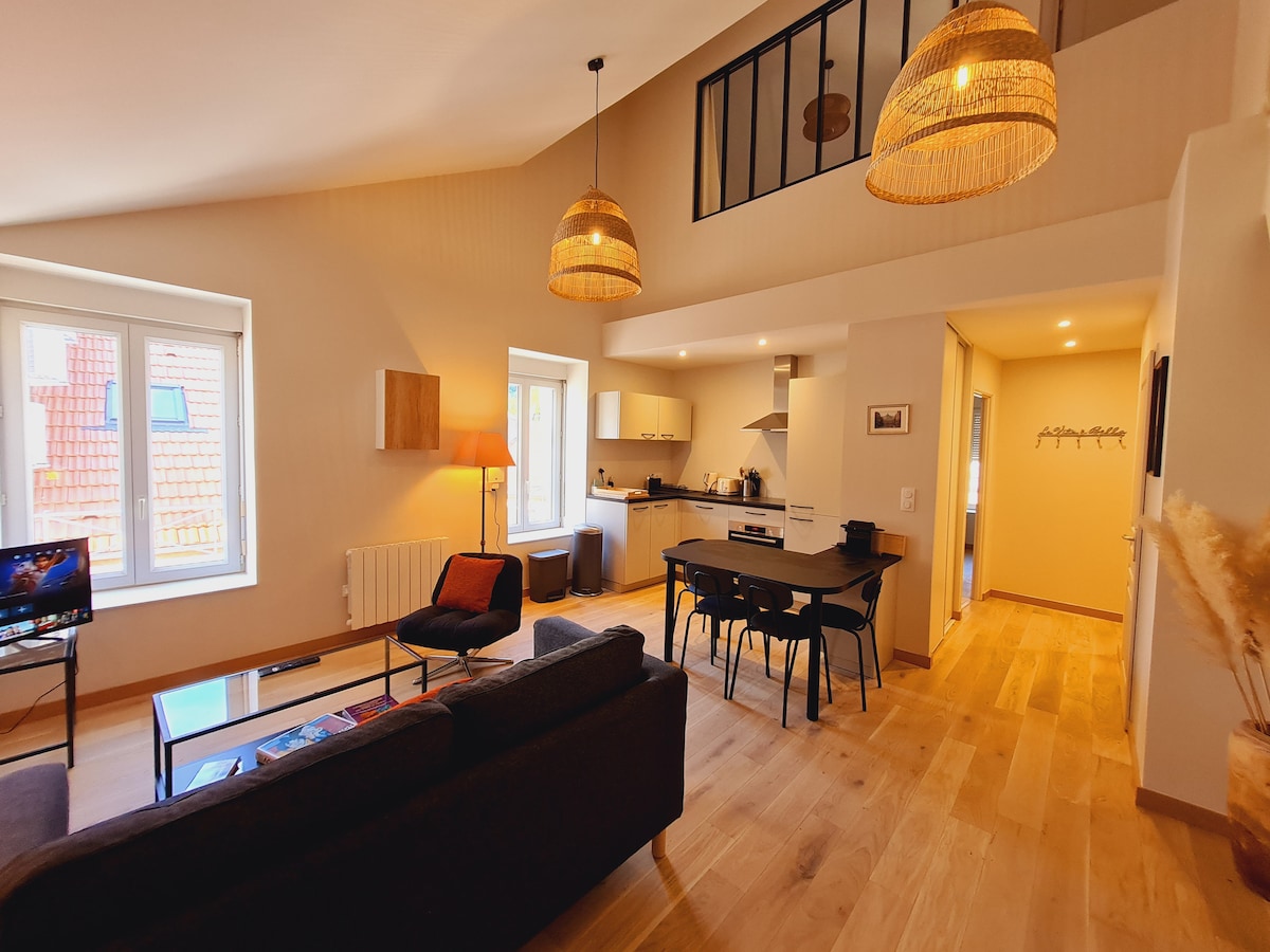 Этот уникальный лофт с кондиционером расположен в центре исторического центра, в то время как он тихий внизу двора в непосредственной близости от хосписов. Из окон открывается потрясающий вид на площадь Карно и даже колокольню Hospices. Мы полностью отремонтировали и украсили качественными благородными материалами. Впечатляющий соборный потолок высотой 6 м, очень светлый. Рядом бесплатная парковка, рестораны и магазины на площади. Полностью оборудованная и круглосуточная регистрация.