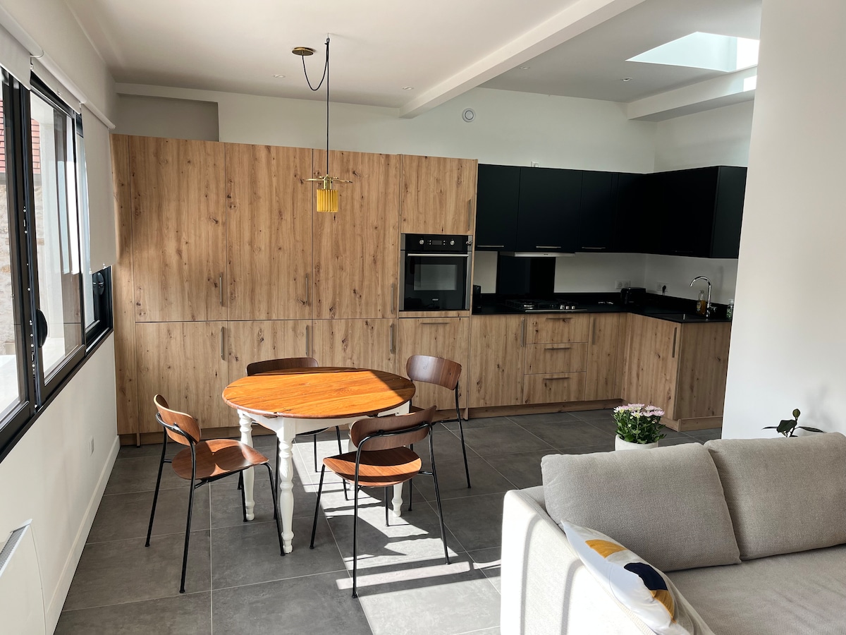 2 комнаты недавно отремонтированы, приятные и светлые благодаря стеклянному окну и высоте потолка. Кухня открыта для полностью оборудованной гостиной (стиральная машина, сушилка), без микроволновой печи. Есть кофемашина Nespresso и тостер. Возможность поесть на улице (большая терраса). Частная парковка. Полотенца для ванны, полотенца и постельное белье включены. Приветственный набор, включающий кофейные капсулы, травяные чаи и чай.